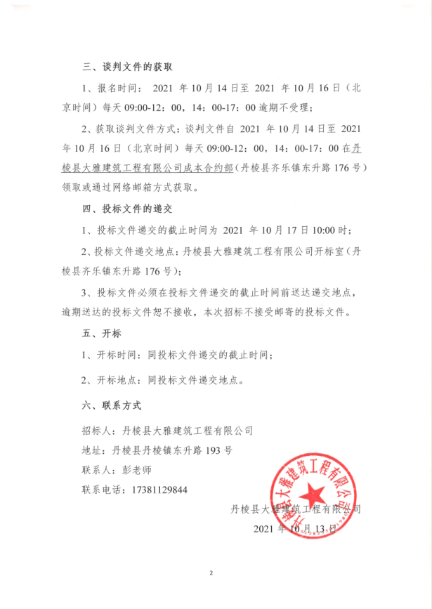 【大雅建筑公司】丹棱縣沿河慢行系統(tǒng)橋體下穿人行道排洪排澇改造工程(二標段)專業(yè)分包競爭性談判公告