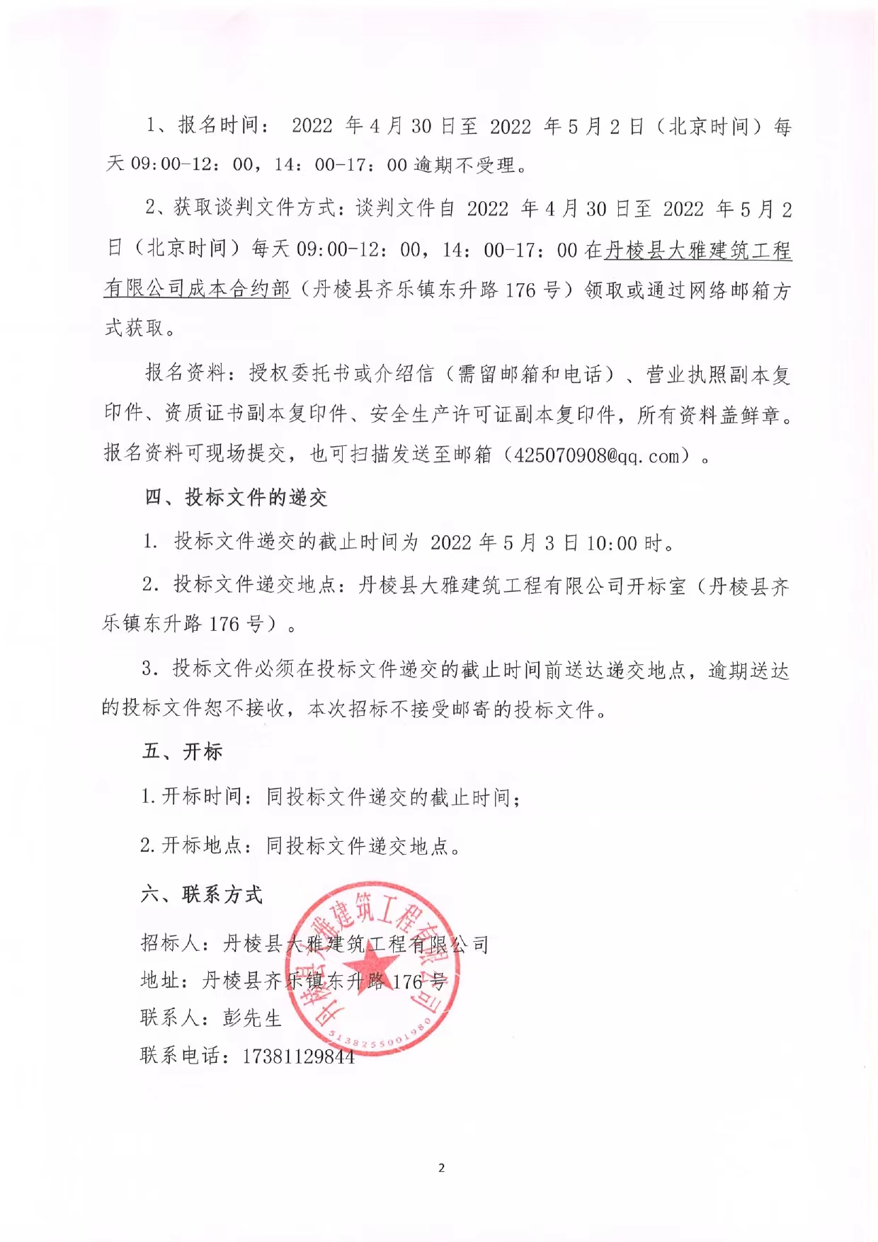 丹棱縣熊河碥片區(qū)市政基礎(chǔ)設(shè)施建設(shè)項(xiàng)目一期(城市雙修)設(shè)計(jì)施工總承包(EPC)路面水穩(wěn)工 程專業(yè)分包項(xiàng)目競(jìng)爭(zhēng)性談判公告
