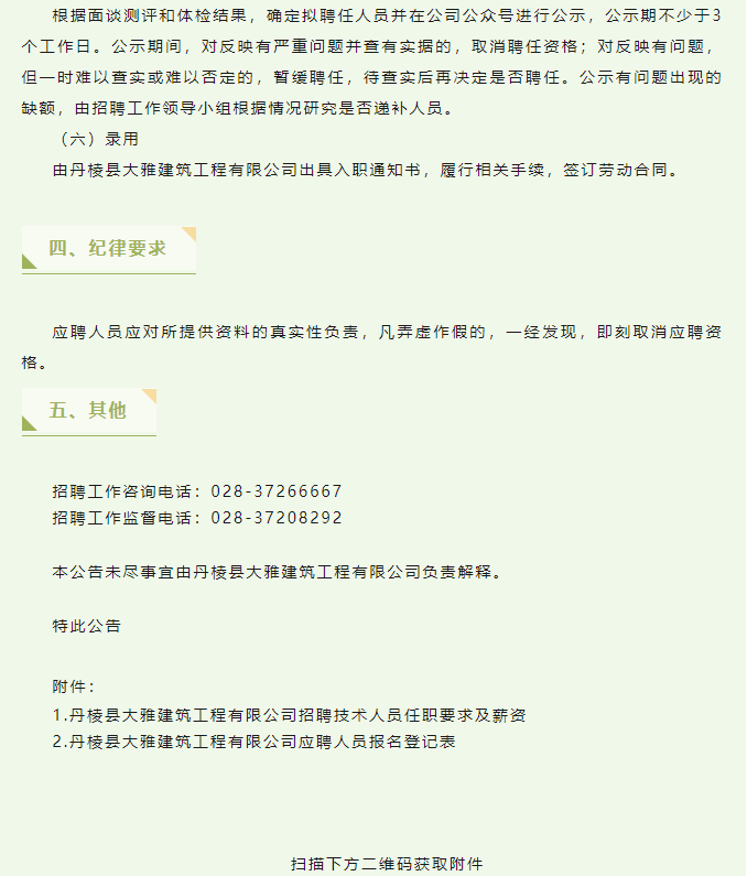 丹棱縣大雅建筑工程有限公司關(guān)于公開招聘6名臨時(shí)性專業(yè)技術(shù)人員的公告
