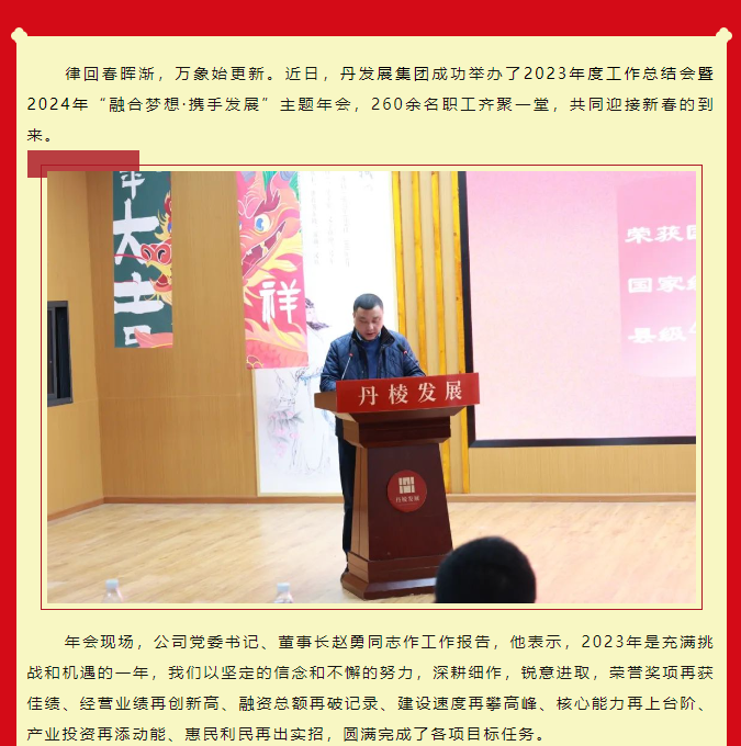 融合夢想·攜手發(fā)展︱丹發(fā)展集團舉辦2023年度工作總結(jié)會暨2024主題年會