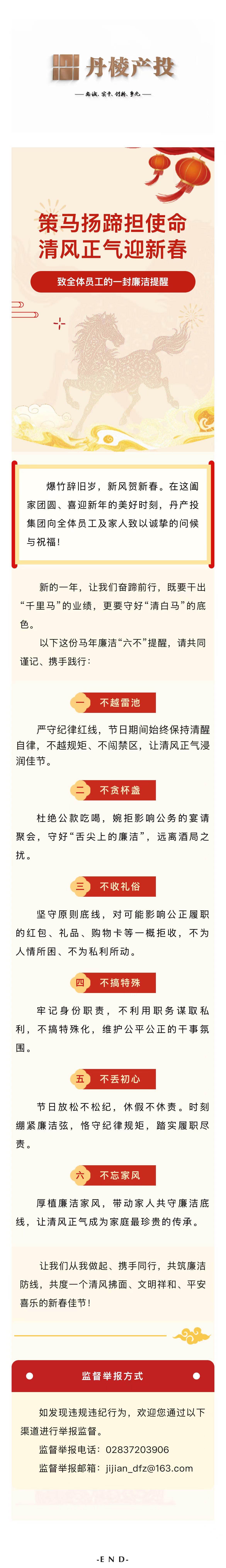 【節(jié)日紀語】策馬揚蹄擔使命 清風正氣迎新春——致全體員工的一封廉潔提醒